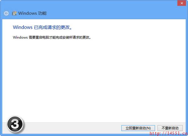Hyper-V支持虚拟机的内存动态分配,和主机分享剩余内存等先进功能。那么,我们应该如何来开启和配置Windows 8免费的虚拟机软件呢?首先,我们打开“控制面板→程序”,在右侧单击“启用或关闭Windows功能”链接(如图1);在弹出的Windows 功能”窗口勾选Hyper-V”,确定后即可开始安Hyper-V组件(如2);接着,需要单击“立即重新启动”按钮两次自动重启后才能完成功能配置(如3)