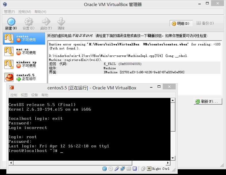 2.打开VBox,因为.VirtualBox没有,所以配置还,只是启动系统会提示找不到文件