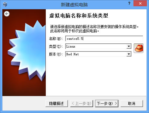 4.换个方法,其实这个方法才是最简单的. 新建一,比如Centos. 我原本的是centos所以我新建Red hat,跟之前的参数一样设.