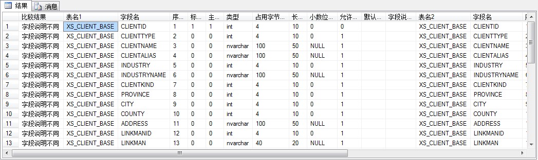 or a.占用字节 <>b.占用字节 or a.长度 <>b.长度 or a.小数位数 <>b.小数位数