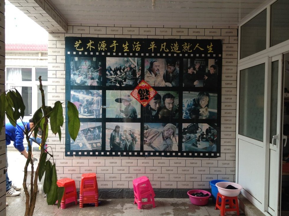 学校一进门的墙上贴着各种影视剧的海报