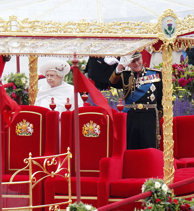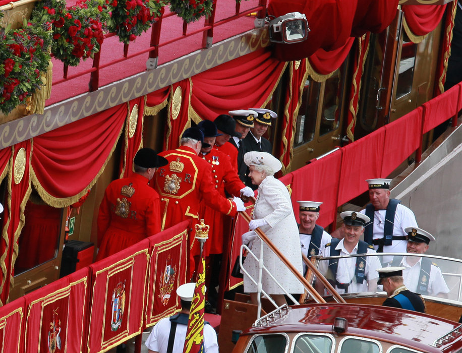 63日,英国女王伊丽莎白二世登上“王室之舟”。新华社发(相梅摄)