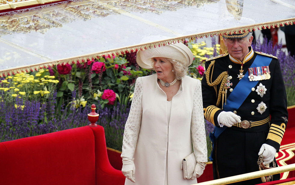 63日,英国王储查尔斯和妻子卡米拉在“王室之舟”上。新华社记 王丽
