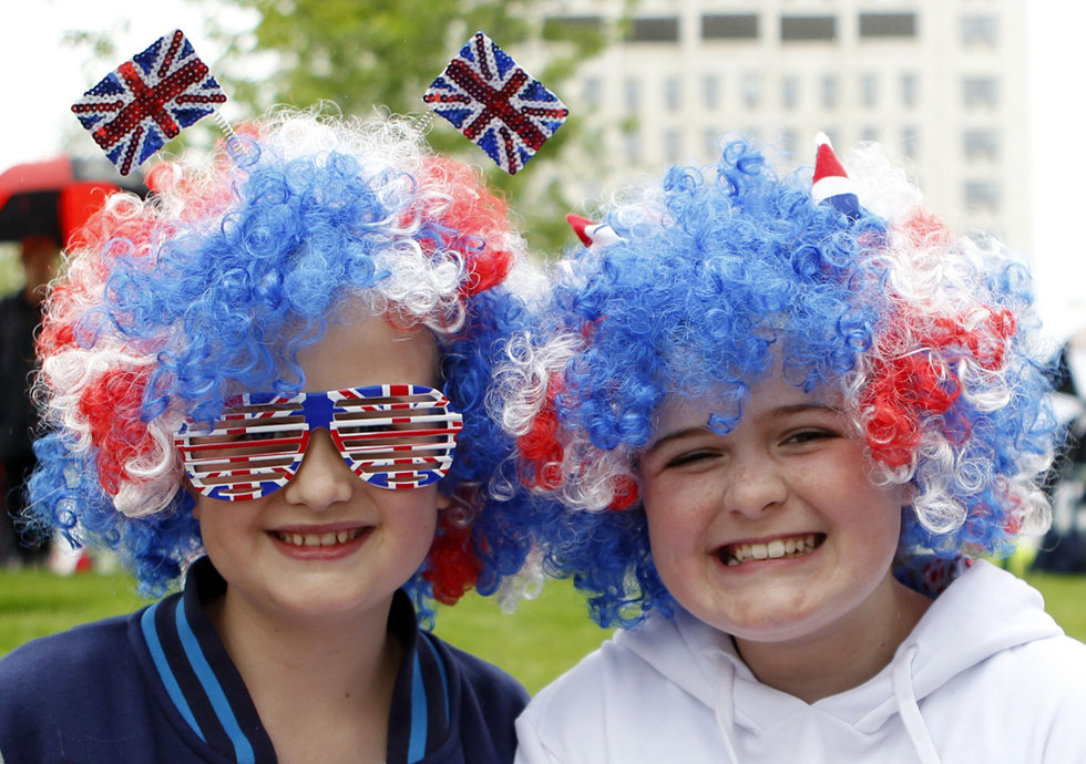 63日,两个小孩在英国伦敦银禧花园里等待巡游开始。新华社记 王丽