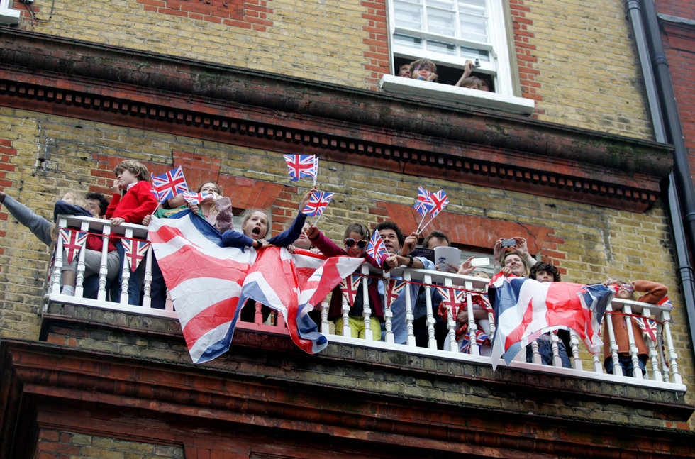 63日,英国女王伊丽莎白二世与丈夫在“王室之舟”上向民众挥手致意。新华社记 王丽