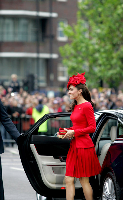 63日,在英国伦敦,凯特王妃下车准备登上“王室之舟”。新华社发(高塔姆摄