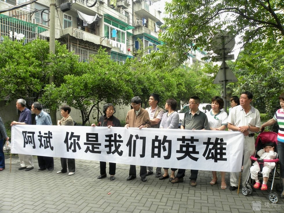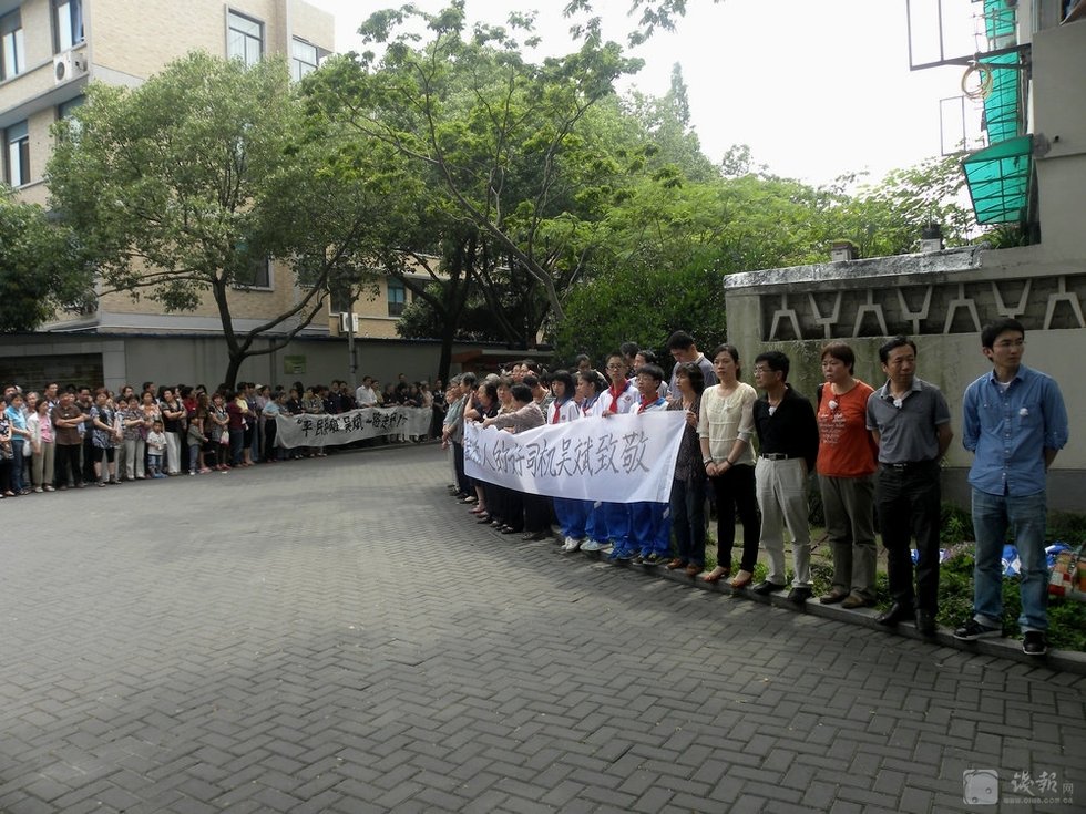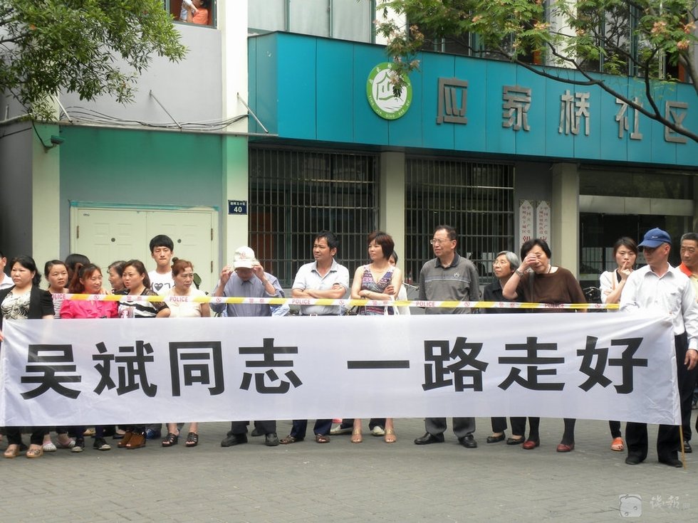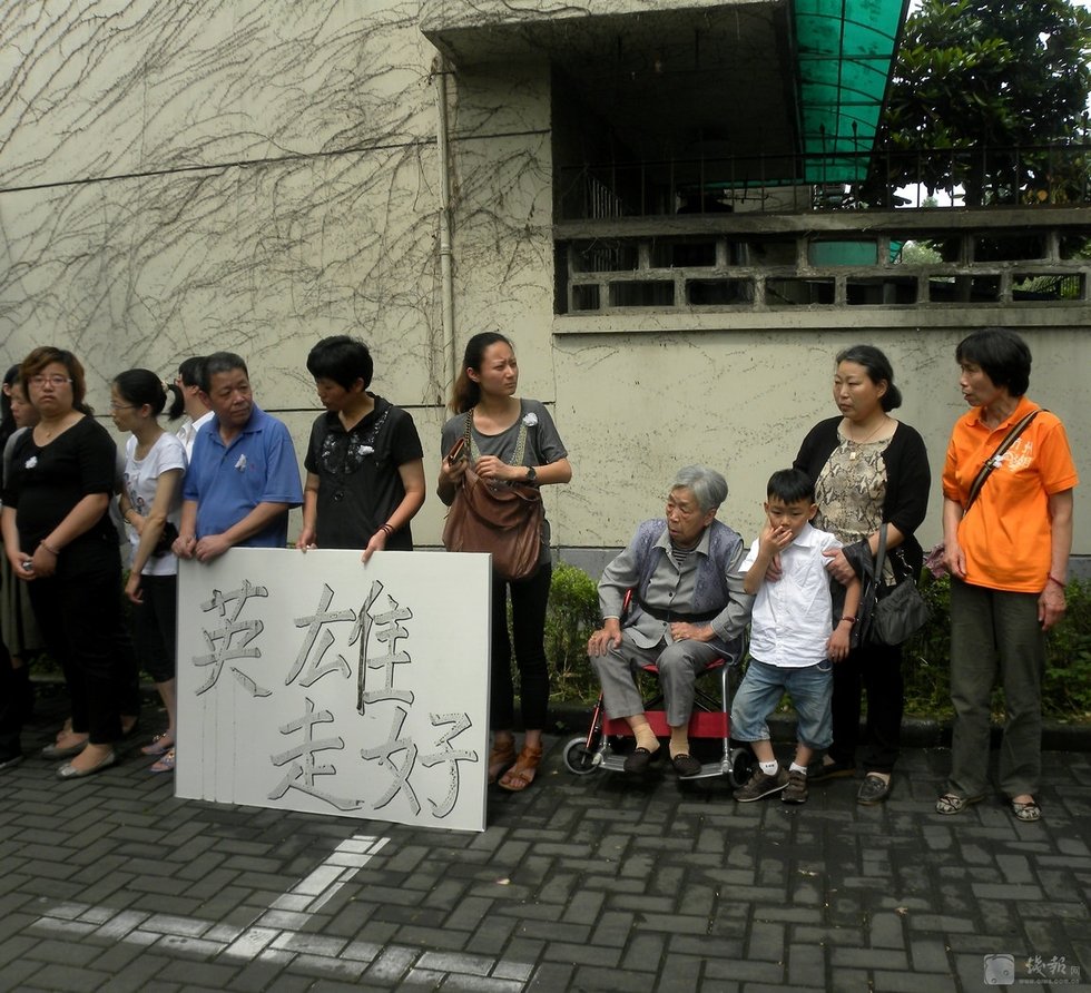 自发的市民来到平民英雄吴斌所居住小区——朝晖五区,送别英雄。图片来源:钱报
