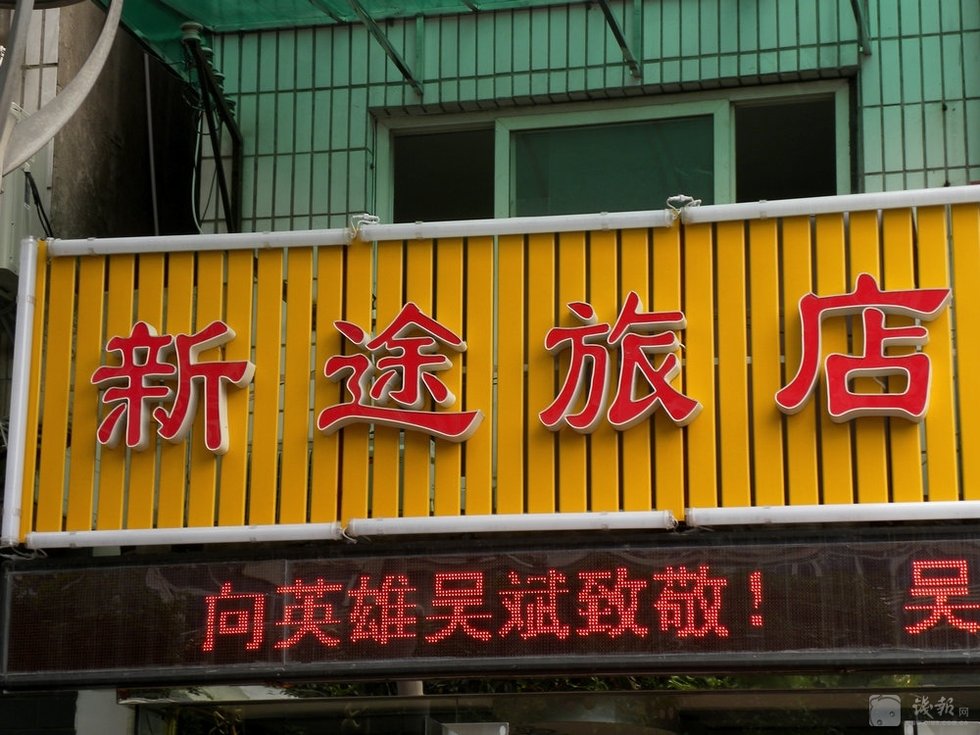 附近店面打出送别英雄的字幕。图片来源:钱报
