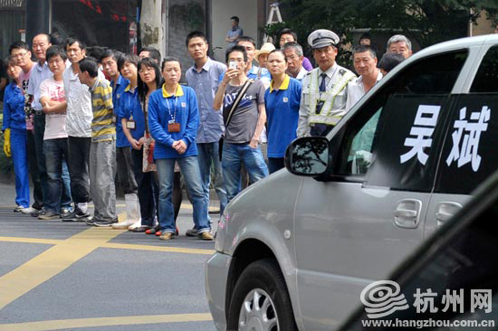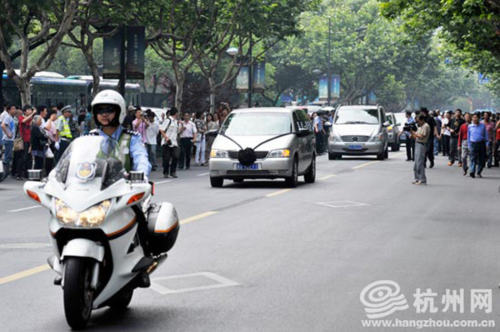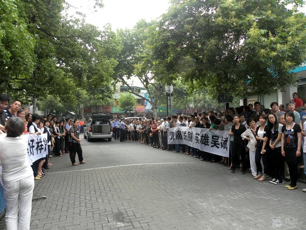 "平民英雄"吴斌的遗体,被缓缓抬出灵堂。来自杭州的不少市民纷纷赶来送吴斌最后一程