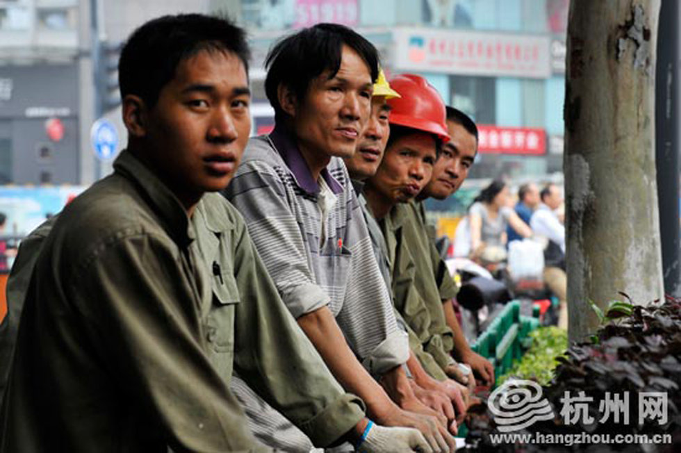 一队正在施工的工人也放下手中的活计,站在路边目送英雄。图片来源:杭州