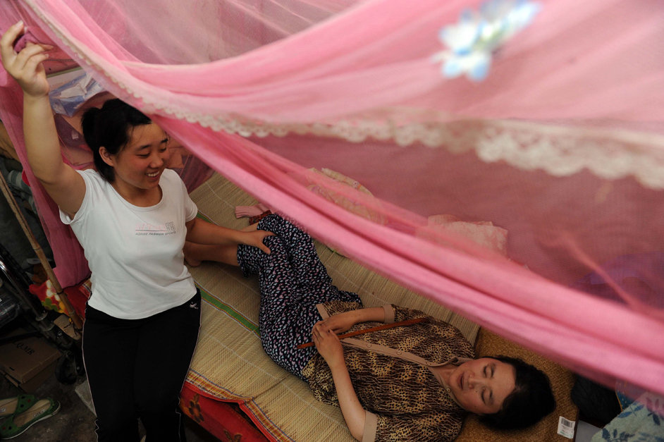 王璐和母亲在租住的房间里73日摄)