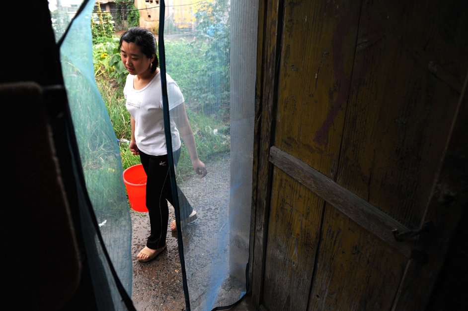 王璐提水准备做晚饭(73日摄)