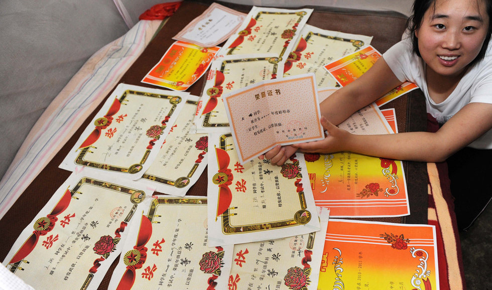 王璐在展示上学期间获得的部分奖状和荣誉证书(73日摄)