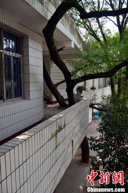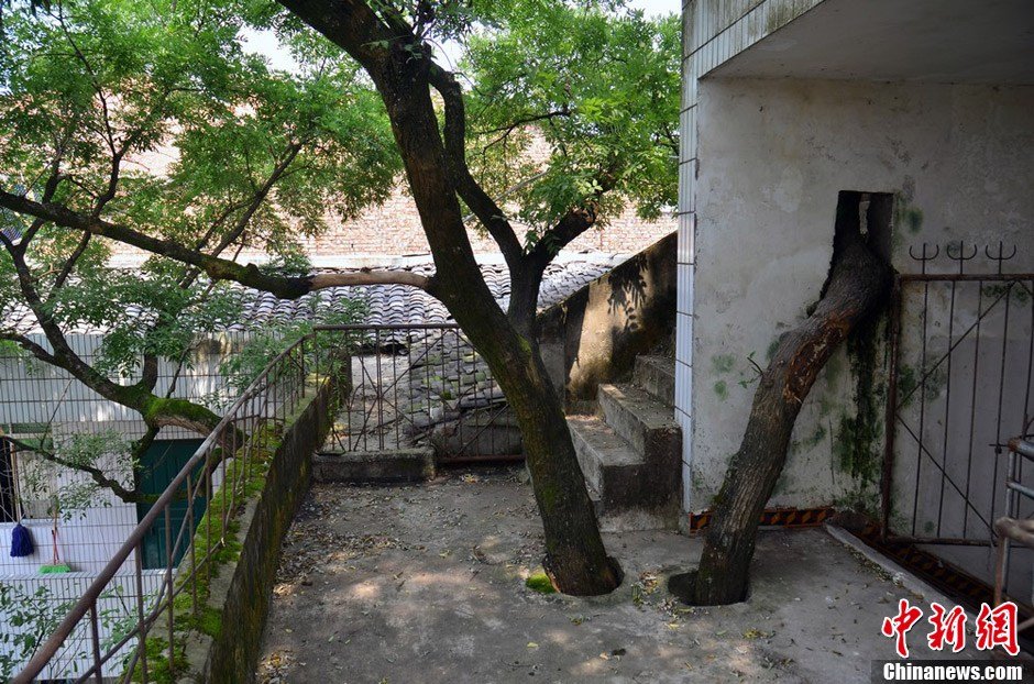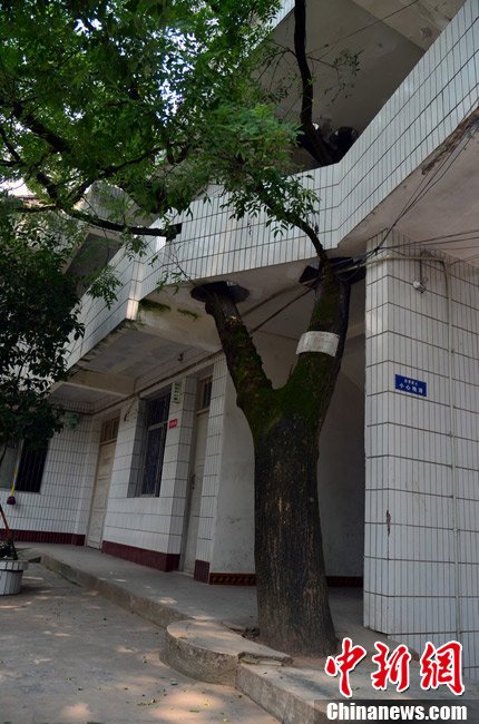 在四川省达州市达县北山乡卫生院,有三110年历史的老槐树穿墙过梯,与一3层的楼房形成“大树穿楼过、楼中有树、树中有楼”的“楼树交融”奇观,成为人与自然和谐相处的一道靓丽风景线