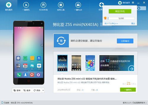 1:刷机精2.1.0新增Nokia X、努比亚Z5S18款机型一键刷