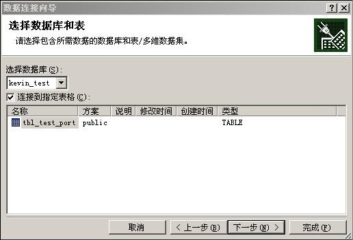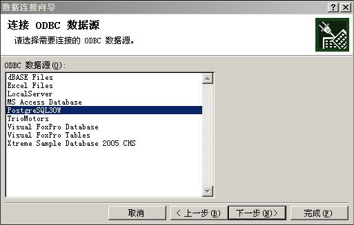 点“下一步”,选择数据源的名子,我的为“PostgreSQL30W,这才前面添加数据源时指定的,如果忘记了,就去看看